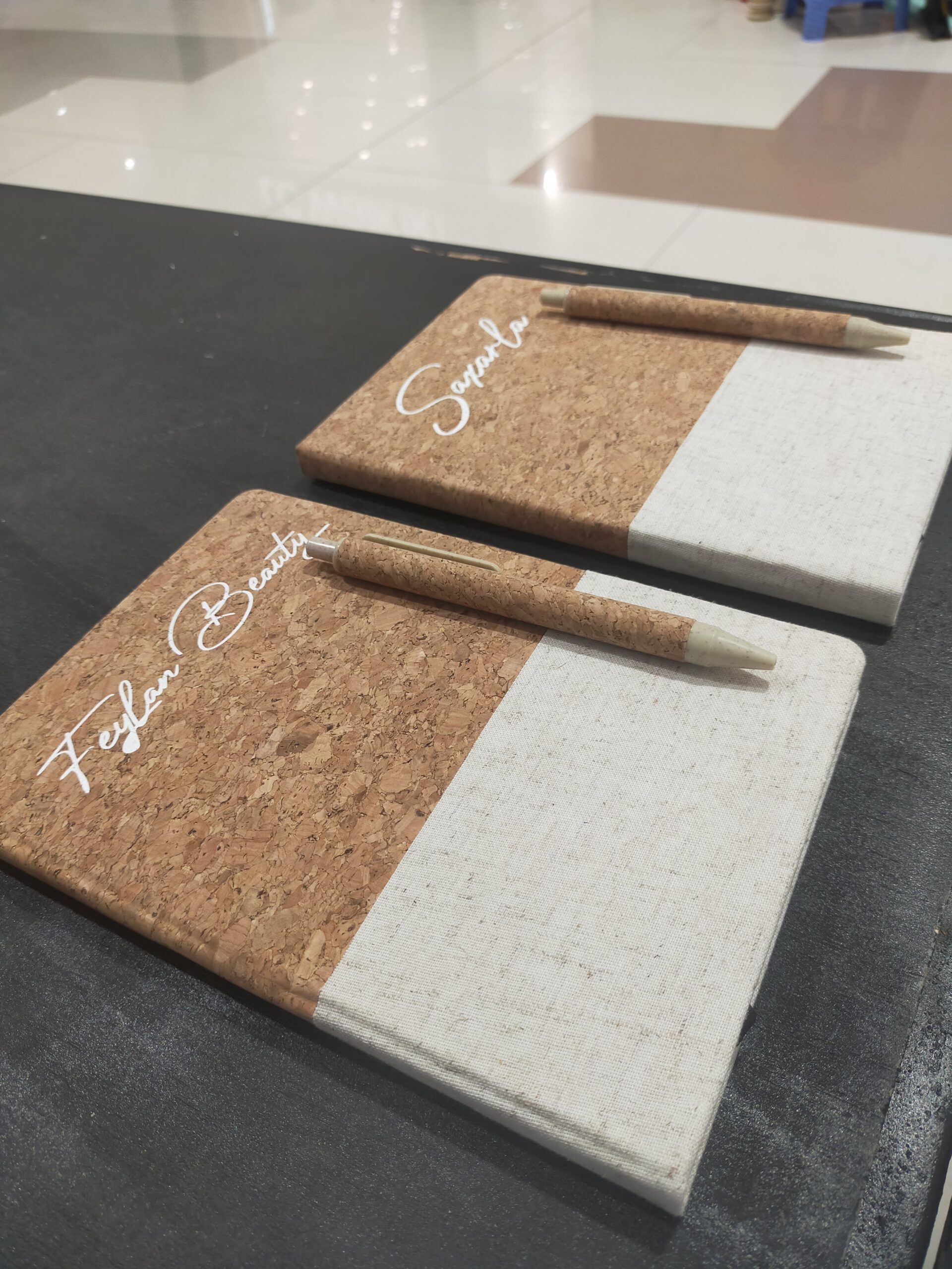 The Cork and Fabric Executive Notebook combines eco-friendly style with functionality. Its personalized cork and fabric cover, paired with a matching pen, makes it perfect for professionals, students, or thoughtful gifts.